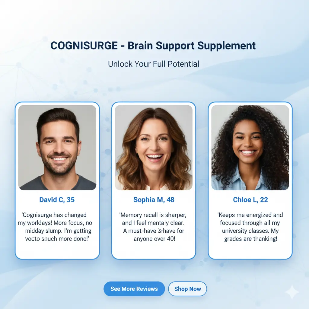 “Cognisurge has been a game-changer. It’s natural, effective, and I feel like my mental clarity has returned. I highly recommend it to anyone feeling mentally drained.”